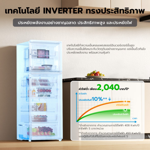 เทคโนโลยีช่วยละลายน้ำแข็งอัตโนมัติ ลดการเกิดน้ำแข็งเกาะ ทำให้ไม่ต้องเสียเวลาในการละลายน้ำแข็งบ่อย ดูแลรักษาง่าย