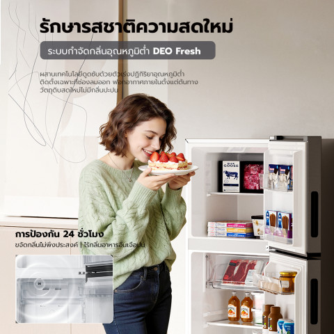 DEO Fresh ระบบกำจัดกลิ่นขั้นสูง ใช้เทคโนโลยี Low-Temperature Catalyst ร่วมกับถ่านกัมมันต์ ไลโซไซม์ และตาข่ายแพลเลเดียม ช่วยดูดซับและลดกลิ่นไม่พึงประสงค์ ทำให้กลิ่นอาหารไม่ปะปนกัน ภายในตู้เย็นสะอาดและสดชื่นอยู่เสมอ