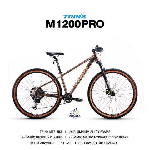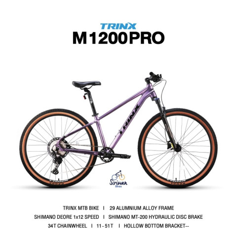 สัมผัสประสบการณ์สายป่าตัวจริงกับ เสือภูเขา Trinx 1200P ชุดขับ SHIMANO DEORE 1x12 สปีด จักรยานเสือภูเขาล้อ 29 นิ้ว ที่ออกแบบมาเพื่อสายลุยและสายแข่งโดยเฉพาะ ด้วยเฟรมอลูมิเนียมซ่อนสายดีไซน์ใหม่ น้ำหนักเบา ทรงองศาเรซซิ่ง ควบคุมง่าย คล่องตัวทั้งทางเรียบและทางฝุ่น มาพร้อมสีสันใหม่สไตล์อินเทรนด์ สวยสะดุดตา โดดเด่นทุกเส้นทาง