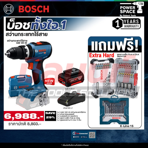 หากคุณมองหาสว่านกระแทกไร้สายที่พกพาง่าย แต่ทรงพลัง ใช้งานได้ครอบคลุมทั้งงานไม้ เหล็ก ปูน และงานซ่อมแซมรอบบ้าน Bosch GSB 18V-65 ชุดนี้คือคำตอบที่คุ้มค่าที่สุด ทั้งเรื่องประสิทธิภาพ ความทนทาน และอุปกรณ์เสริมที่ให้มาครบพร้อมลุยทุกโปรเจกต์ของคุณ