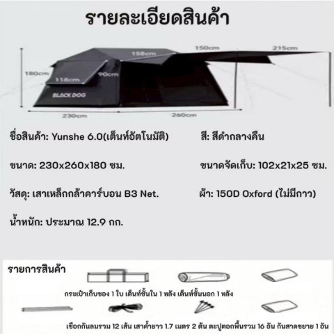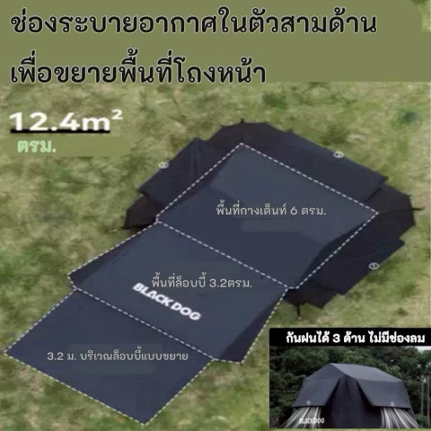 สัมผัสประสบการณ์แคมป์ปิ้งแบบใหม่กับ 🔥พร้อมส่ง🔥 Blackdog Cloud Tent 6.0 / Cloud Tent 13 เต็นท์กางออโต้ เต็นท์เอนกประสงค์ขนาดใหญ่ขนาดพื้นที่ใช้สอยรวมสูงสุดประมาณ 12.4 ตร.ม. โดดเด่นด้วยระบบกางอัตโนมัติ เปิด–เก็บได้ง่าย ใช้งานสะดวกแม้ไปแคมป์คนเดียว พร้อมปกป้องคุณจากแดดแรงและฝนหนักได้อย่างมั่นใจ