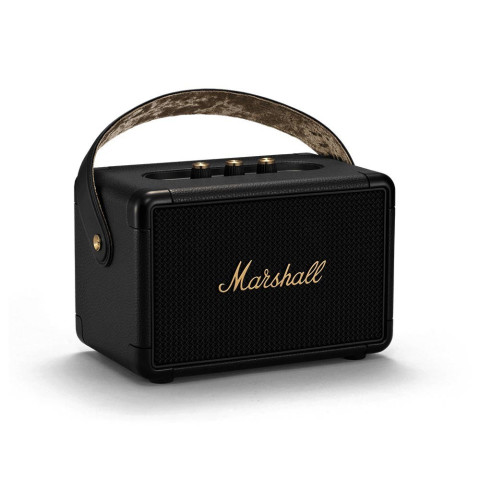 สัมผัสพลังเสียงระดับตำนานในดีไซน์คลาสสิกสไตล์ร็อกกับ ลำโพงบลูทูธ Marshall Bluetooth Speaker Kilburn II by Studio7 สี Black/Brass ที่ผสานเอกลักษณ์แบรนด์ Marshall เข้ากับความสะดวกแบบพกพา มาพร้อมหูหิ้วดีไซน์คล้ายสายกีตาร์ น้ำหนักเพียง 2.5 กก. เคลื่อนย้ายง่าย จะตั้งในห้องนั่งเล่น ระเบียง หรือพกไปปาร์ตี้นอกสถานที่ก็พร้อมทุกจังหวะเพลง ในราคาเพียง 10,002.30 บาท