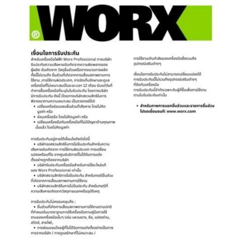 กำลังไฟฟ้า: ใช้งานด้วยระบบแบตเตอรี่ 20V (ใช้ร่วมกับแบตเตอรี่ WORX 20V รุ่นที่รองรับ)