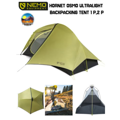 NEMO Equipment HORNET OSMO Ultralight Backpacking Tent 2P เต็นท์เดินป่าน้ำหนักเบาพิเศษสำหรับ 2 คน ออกแบบมาสำหรับนักเดินป่าที่ต้องการลดน้ำหนักสัมภาระ แต่ไม่ยอมลดทอนความสบายและความทนทาน มาพร้อมผ้า OSMO™ รุ่นใหม่ที่กันน้ำได้ดีกว่าเดิม 4 เท่า และยืดตัวน้อยลง 3 เท่าเมื่อเปียก จึงคงรูปสวย ไม่ย้วย ไม่หย่อนในสภาพอากาศแปรปรวน