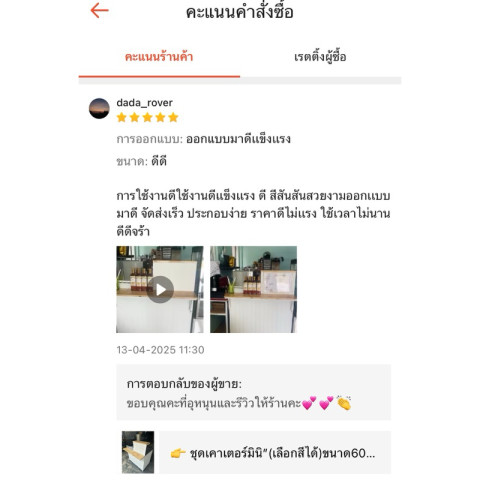 ขนาดตัวเคาน์เตอร์: กว้าง 60 ซม. x ยาว 100 ซม. x สูง 85 ซม.