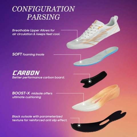 ปรับสมรรถนะการวิ่งให้เต็มศักยภาพ – โครงสร้างรองเท้าและแผ่นคาร์บอนช่วยเพิ่มแรงส่ง ลดการใช้แรงเกินจำเป็น ให้คุณทำเวลาได้ดีขึ้นทั้งการฝึกและลงแข่งจริง