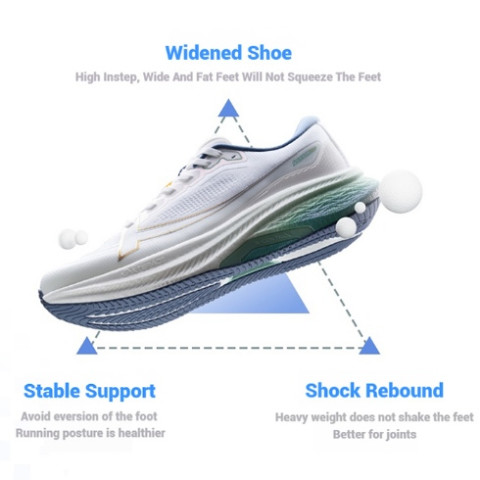 Rebound Support พื้นโฟมตอบสนองแรงเด้งคืนดี ให้จังหวะก้าวที่นุ่มแต่มีแรงส่ง วิ่งได้นานขึ้นไม่ล้าเร็ว