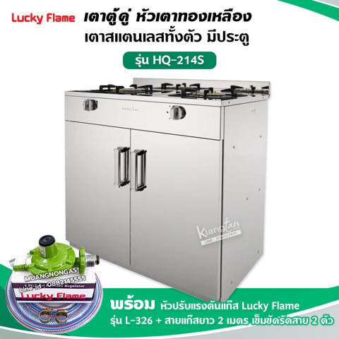 LUCKY FLAME เตาตู้สแตนเลสทั้งตัว หัวเตาทองเหลืองแท้ รุ่น HQ-214S ครบชุดพร้อมใช้งาน ตอบโจทย์ทั้งครัวบ้านและครัวร้านอาหาร ด้วยโครงสร้างสแตนเลสทั้งตัว แข็งแรง ทนทาน ทำความสะอาดง่าย มาพร้อมหัวเตาทองเหลืองแท้ให้ไฟสม่ำเสมอ และระบบจุดประกายไฟอัตโนมัติ ใช้งานสะดวก ปลอดภัยยิ่งขึ้น