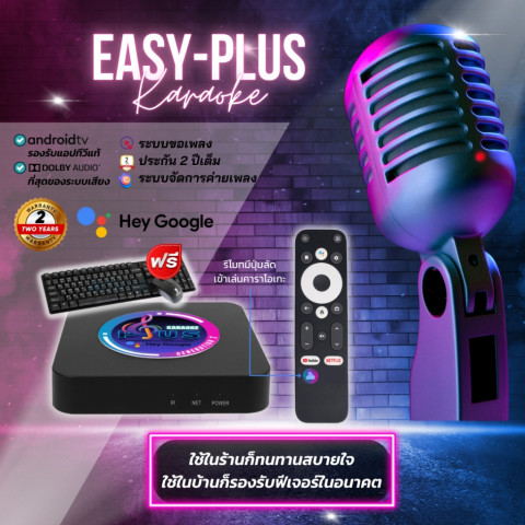 EASY KARAOKE รุ่น Plus เครื่องเล่นคาราโอเกะสตรีมมิ่งรุ่นใหม่ต้อนรับปี 2025 ภาพคมชัด เสียงเต็มพลัง ใช้งานง่ายด้วย OS Android TV แท้ รองรับแอปดูหนัง/สตรีมมิ่งได้หลากหลาย มาพร้อม วันใช้งาน 2 ปี และ ประกันตัวเครื่อง 2 ปีเต็ม คุ้มค่าพร้อมร้องได้ยาวๆ ที่บ้านแบบจัดเต็ม