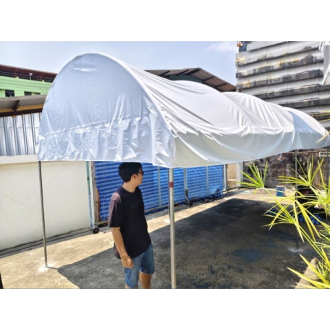 เต็นท์โค้ง 3×6 ผ้าใบ UV (ผลิต 2-3 วัน) เต็นท์โค้งทรงสวย โครงสร้างแข็งแรง เหมาะทั้งงานขายของ งานอีเวนต์ งานบวช พื้นที่จอดรถ หรือใช้บังแดดบังฝนหน้าบ้าน/หน้าอาคาร ใช้วัสดุคุณภาพ พร้อมผ้าใบยูวีหนาเหนียว ทนแดดทนฝน ใช้งานได้ยาวนาน คุ้มค่าในระยะยาว
