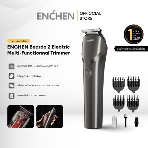 ENCHEN Beardo 2 Electric Multi-Functionnal Trimmer ปัตตาเลี่ยนไฟฟ้าไร้สายชาร์จ USB ใช้งานง่าย ตัดผม/เล็มขอบ/เก็บรายละเอียดได้คมกริบ เหมาะทั้งใช้เองที่บ้านและพกพาเดินทาง มาพร้อมระบบล็อคเพื่อความปลอดภัย และรับประกันสินค้า 1 ปี ในราคาคุ้มค่า