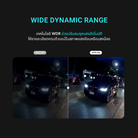 ลดปัญหาภาพมืด/สว่างเกินเมื่อเจอแสงย้อน ไฟหน้ารถ หรือทางมืด ทำให้ป้ายทะเบียนและรายละเอียดสำคัญชัดขึ้นเลนส์มุมกว้าง 120° รูรับแสง F2.0