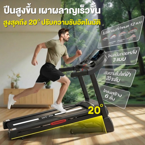 ปรับความชันไฟฟ้า 0–20° เพิ่มความเข้มข้นเหมือนวิ่งขึ้นเขา ช่วยกระตุ้นการเผาผลาญ