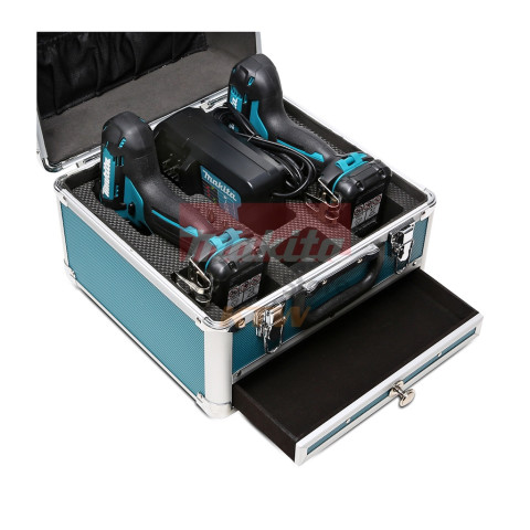 กล่องอลูมิเนียม 1 กล่อง แข็งแรง ภายในจัดระเบียบเครื่องมือและอุปกรณ์ได้เรียบร้อย เหมาะสำหรับพกพาไปหน้างาน