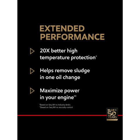 Mobil 1 Extended Performance 5W-30 ยังโดดเด่นในด้านการปกป้องอุณหภูมิ สามารถทนความร้อนได้สูงสุดถึง 260°C (500°F) และคงประสิทธิภาพการไหลตัวได้ดีแม้ในอุณหภูมิต่ำสุดถึง -40°C (-40°F) ทำให้สตาร์ทเครื่องง่าย ลดการสึกหรอช่วงสตาร์ทเย็น และปกป้องเครื่องยนต์ได้ในทุกสภาพอากาศ