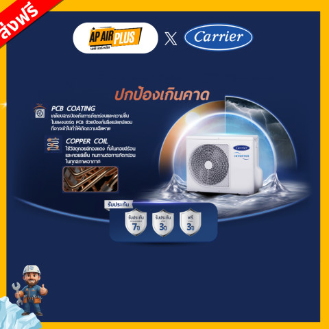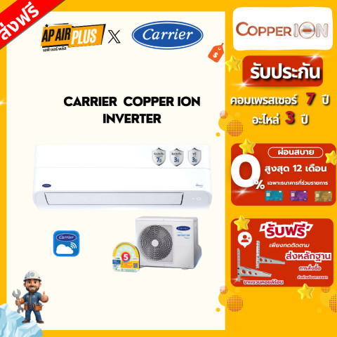 รุ่นใหม่ 2026 Carrier Copper ION Inverter 9000BTU-24000BTU คือคำตอบสำหรับคนที่ต้องการทั้งความเย็นจัด อากาศสะอาด ประหยัดไฟ และระบบอัจฉริยะในเครื่องเดียว ติดตั้งครั้งเดียว คุ้มค่าทุกปีที่ใช้งาน