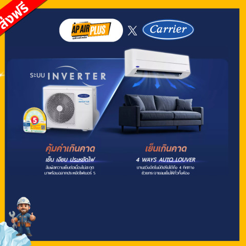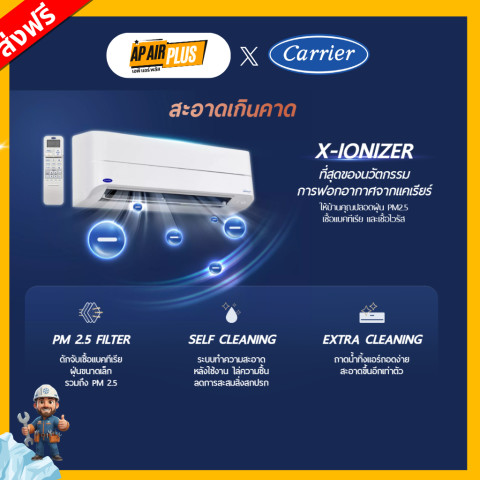 สัมผัสประสบการณ์ความเย็นสะอาดและชาญฉลาดเหนือระดับกับ รุ่นใหม่ 2026 Carrier Copper ION Inverter 9000BTU-24000BTU แอร์อินเวอร์เตอร์ดีไซน์ทันสมัย ที่มอบทั้งความเย็นจัด เงียบ ประหยัดไฟ พร้อมระบบฟอกอากาศและฟังก์ชันอัจฉริยะครบครัน ในราคาคุ้มค่าเพียง 17,247.12 บาท รองรับการใช้งานแบบผ่อนชำระสบายๆ ให้คุณเป็นเจ้าของได้ง่ายยิ่งขึ้น