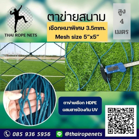 เปลี่ยนสนามกีฬาของคุณให้ปลอดภัยและเป็นระเบียบยิ่งขึ้นด้วย สนามสูง 4 เมตร ตาข่ายกันสัตว์เลี้ยงเข้าสนามกีฬา และกันลูกบอลออกจากสนาม พร้อมใช้งานได้ทันที ขนาดเชือก 3.5 มม. ช่องตา 12x12 ซม. ออกแบบมาเพื่อสนามฟุตบอลและฟุตซอลโดยเฉพาะ ตอบโจทย์ทั้งสนามซ้อมและสนามแข่งขันในราคาเพียง 9,000 บาท