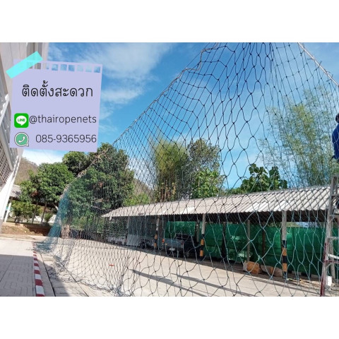 ปล่อยปลายเชือกไว้ที่มุมตาข่าย มุมละประมาณ 2 เมตร เพื่อให้มัดกับเสาได้สะดวก ลดเวลาและความยุ่งยากในการกางตาข่าย