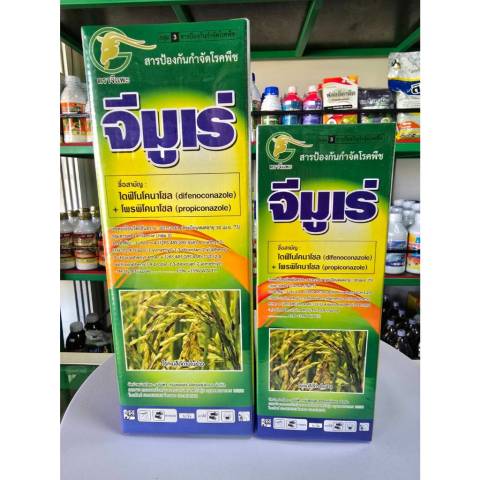 จีมูเร่ (ยกลัง 1 ลิตร x 12 ขวด) สารป้องกันกำจัดโรคพืชประสิทธิภาพสูง สูตรผสม ไดฟีโนโคนาโซล + โพรพิโคนาโซล ช่วยดูแลแปลงข้าวและพืชเศรษฐกิจให้แข็งแรง ลดความเสียหายจากโรคสำคัญ เพิ่มโอกาสได้ผลผลิตสวยสม่ำเสมอ ข้าวเม็ดสวย เม็ดใส เหลืองสวย พร้อมช่วยให้ ใบธงเขียวนาน เหมาะอย่างยิ่งในช่วงใกล้ออกรวง/ออกรวงแล้ว และช่วงพืชกำลังติดผล