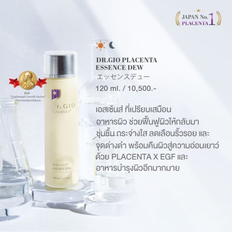 Grefas Dr.GIO Placenta Essence Dew เกรฟาส ดร.จีโอ พลาเซ็นต้า เอสเซ้นส์ ดิว เอสเซ้นส์บำรุงผิวเข้มข้น “เสมือนอาหารผิว” ผสาน PLACENTA X EGF และสารบำรุงผิวหลากหลาย ช่วยเติมความชุ่มชื้น ฟื้นบำรุงผิวให้ดูอิ่มฟู ลดเลือนริ้วรอยและจุดด่างดำ พร้อมเผยผิวที่ดูกระจ่างใสและอ่อนเยาว์ในทุกวัน ด้วยแนวคิดส่วนผสมระดับรางวัลโนเบลที่มุ่งเน้นการดูแลผิวอย่างล้ำลึก