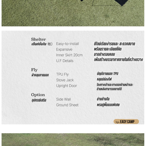 เต็นท์ใน (อุปกรณ์เสริม/มีให้เลือก): แบบ Shelter มุ้ง และ Shelter TPU
