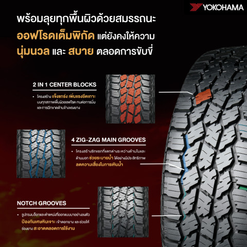 ดีไซน์ดอกยาง Multi-Pitch Tread Pattern ช่วยลดเสียงรบกวนบนถนนดำ ให้ความรู้สึกขับขี่ที่นุ่มและเงียบกว่ายางลุยทั่วๆ ไป เหมาะกับการใช้ในชีวิตประจำวัน