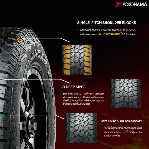 เนื้อยางสูตรใหม่ของ GEOLANDAR A/T4 ได้รับการออกแบบให้ยืดหยุ่นดีขึ้น ช่วยเพิ่มการยึดเกาะทั้งบนพื้นถนนเปียกและแห้ง ลดอาการลื่นไถล และยกระดับความปลอดภัยในทุกสภาพอากาศ ผ่านมาตรฐาน 3PMSF (Three-Peak Mountain Snowflake) ที่การันตีสมรรถนะยางในสภาพอากาศเย็นหรือพื้นที่ที่เจอน้ำฝนบ่อยได้อย่างมั่นใจ