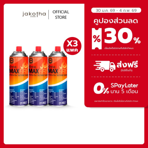[9 กระป๋อง] MAX FIRE แก๊สกระป๋อง แก๊สปิคนิค พร้อมระบบป้องกันการระเบิด ปริมาณ 250 กรัมต่อกระป๋อง (3 แพ็ค) คือผู้ช่วยคู่ใจสำหรับทุกทริปแคมป์ปิ้ง ปิกนิก และการทำอาหารนอกสถานที่ ด้วยมาตรฐานการผลิตจากประเทศเกาหลี มั่นใจได้ทั้งในเรื่องคุณภาพ ความปลอดภัย และความคุ้มค่าในชุดเดียว