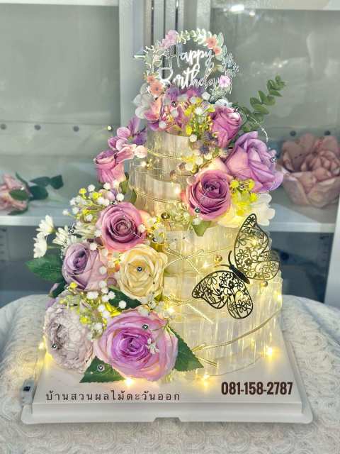 ตัวเค้กถูกออกแบบเป็นทรง 5 ชั้นขนาด XL แบบ 3 มิติ สไตล์ไฮโซ สวยหรู ดูแพง ถ่ายรูปมุมไหนก็ปัง มาพร้อมการจัดดอกไม้โทนหรูที่คัดสรรอย่างประณีต ใช้วัสดุเกรดคุณภาพ ทำให้สามารถเก็บไว้เป็นของตกแต่งต่อได้ ไม่เหี่ยว ไม่เลอะ ไม่เละ เหมาะสำหรับตั้งโชว์ในบ้านหรือในงานเลี้ยง