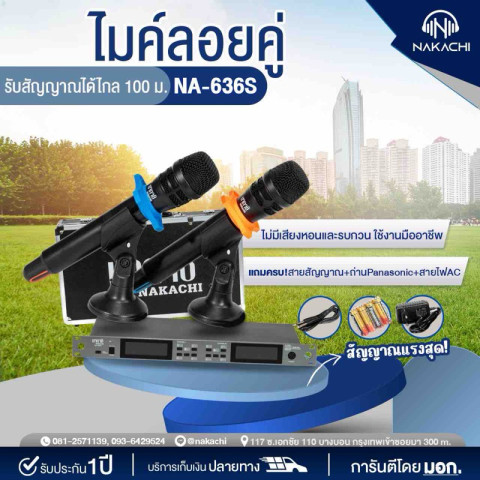 สัมผัสประสบการณ์เสียงคมชัดระดับมืออาชีพกับ NAKACHI รุ่น NA-636S ไมค์ลอยมือถือคู่ UHF ชุดไมโครโฟนไร้สายที่ออกแบบมาเพื่อการใช้งานเวที งานประชุม งานสัมนา คาราโอเกะ ร้านอาหาร หรือใช้งานในโบสถ์และงานอีเวนต์ต่างๆ ให้เสียงชัดเจน มั่นคง และดูเป็นมืออาชีพในทุกสถานการณ์