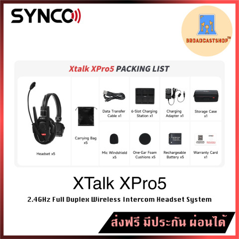 ชุดหูฟังอินเตอร์คอมไร้สาย Synco XTalk XPro5 จำนวนตามเซ็ต