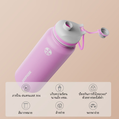 - ความจุ: 750ML (ประมาณ 25oz) เพียงพอสำหรับดื่มระหว่างวัน