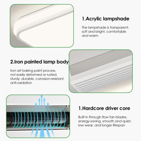 พิเศษด้วยระบบ พัดลมไร้ใบ (Leafless fan) ที่ออกแบบให้ลมไหลเวียนได้อย่างทั่วถึง นุ่มนวล ปลอดภัยมากขึ้นต่อเด็กและสัตว์เลี้ยง พร้อมมอเตอร์ซิลิคอนประสิทธิภาพสูง ขดลวดทองแดงบริสุทธิ์ และรูระบายความร้อน ช่วยลดอุณหภูมิของเครื่องยนต์ ทำงานได้เงียบ นุ่มนวล ไม่มีเสียงรบกวน เหมาะอย่างยิ่งสำหรับติดตั้งในห้องนอนหรือห้องทำงานที่ต้องการความเงียบ