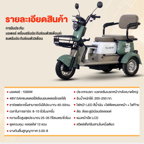 POWER BIKE รถสามล้อไฟฟ้าผู้ใหญ่ 3 ล้อ 1000W48V15AH รุ่นนี้ คือทางเลือกที่ตอบโจทย์ทั้งความปลอดภัย ความประหยัด และความสะดวกสบาย เหมาะสำหรับทุกครอบครัวที่ต้องการพาหนะไฟฟ้าใช้งานง่าย ทนทาน และคุ้มค่าราคา 17,850 บาท