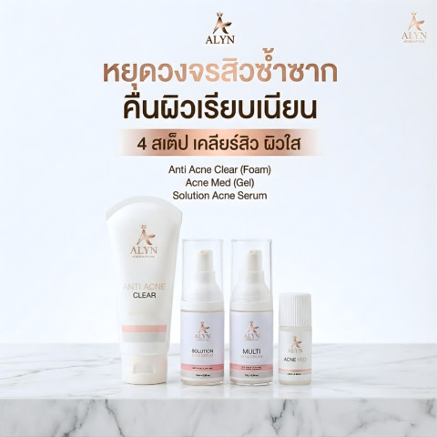 ALYN Anti-Acne Set เซ็ตป้องกันสิว รักษาสิว และบำรุงผิวแบบครบวงจร “จากล้างหน้าจนถึงบำรุง” ออกแบบมาเพื่อคนเป็นสิว ผิวมัน ผิวแพ้ง่ายโดยเฉพาะ ช่วยตัดวงจรสิวซ้ำซาก เคลียร์ผิวให้เกลี้ยงเกลา พร้อมฟื้นฟูให้ผิวแข็งแรง เปล่งใส ดูสุขภาพดีราวผิวผ่านการดูแลจากคลินิก ในเซ็ตเดียวจบ ครอบคลุมทุกปัญหาสิวตั้งแต่สิวอักเสบ สิวอุดตัน ไปจนถึงรอยดำ–แดงหลังสิว