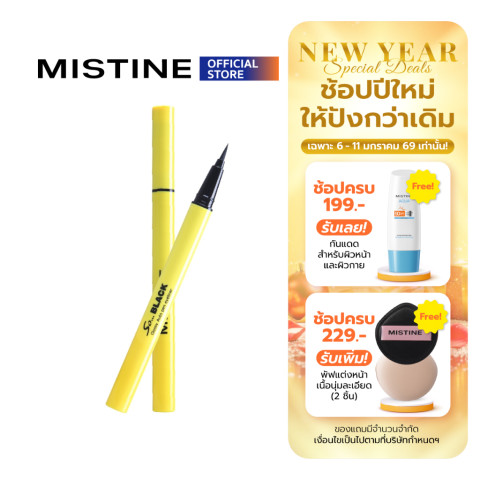 MISTINE SO BLACK GLOSSY AUTO PEN LINER อายไลเนอร์สีดำสนิทที่ให้เส้นคมชัดแบบมือโปรในแท่งเดียว เขียนลื่น ควบคุมง่ายด้วยหัวแปรงออโต้ปลายพู่กันเล็กเรียวแหลม ช่วยกรีดเส้นได้ทั้งแบบบางเฉียบหรือเพิ่มความหนาได้ตามต้องการ พร้อมฟินิชแบบเงาสวย (Glossy) ทำให้ดวงตาดูกลมโตคมชัดอย่างเป็นธรรมชาติ ติดทน กันน้ำ กันเหงื่อ ไม่ไหล ไม่แพนด้า เหมาะสำหรับใช้ได้ทุกวันและทุกโอกาส