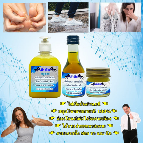 ม้าศึก ชุดปราบกำจัดน้ำกัดเท้าฮ่องกงฟุต ถูกออกแบบมาเพื่อดูแลปัญหาเท้าทุกชนิดสำหรับคนที่มีเหงื่อออกเท้าเยอะ เท้าอับชื้น แฉะ เปียก มีกลิ่นเท้า เป็นผื่น เป็นรูพอง เท้าเปื่อย ลอก แสบ คัน ชุดเดียวเอาอยู่ ช่วยทำความสะอาดอย่างล้ำลึก ลดการสะสมของเชื้อโรคและแบคทีเรีย สาเหตุหลักของกลิ่นอับและอาการคัน พร้อมช่วยให้ผิวเท้ารู้สึกแห้งสบายขึ้นอย่างมั่นใจ