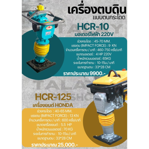 เครื่องตบดิน แบบกระโดด HCR125 พร้อมเครื่องยนต์ HONDA GX160 ราคา 31,500.00 บาท เหมาะสำหรับงานบดอัดดิน งานปรับพื้น งานซ่อมแซมถนน งานวางท่อ และงานก่อสร้างที่ต้องการแรงกระแทกสม่ำเสมอ เข้าถึงพื้นที่แคบได้ดี ให้การบดอัดแน่น รวดเร็ว ลดเวลาและแรงงานหน้างาน ด้วยเครื่องยนต์ HONDA GX160 ที่ขึ้นชื่อเรื่องความทนทาน สตาร์ทง่าย ดูแลรักษาง่าย