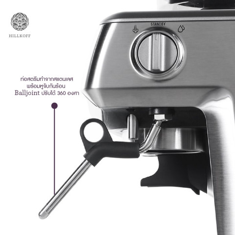 ท่อสตรีมสแตนเลสแบบ Balljoint หมุนได้ 360 องศา มาพร้อมหูจับกันร้อน สร้างฟองนมเนียนละเอียดเหมาะสำหรับ Latte Art