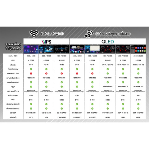 ตัวเลือกสเปก (4 Core / IPS Screen / HIFI + Apple CarPlay):