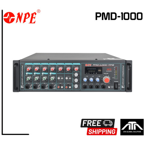 NPE PMD-1000MP3 POWERMIXER เพาเวอร์มิกเซอร์อเนกประสงค์สำหรับงานเครื่องเสียงทั้งงานพูด งานประกาศ และงานดนตรีขนาดย่อม-กลาง ให้กำลังขับแรง ควบคุมเสียงง่าย พร้อมเครื่องเล่น MP3/USB/SD, FM และ Bluetooth ในตัว เหมาะกับติดตั้งในห้องประชุม โรงเรียน วัด ร้านค้า หรือชุดเครื่องเสียงเคลื่อนที่ที่ต้องการความสะดวกและความเสถียร