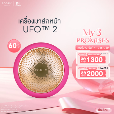 FOREO UFO 2 Fuchsia เครื่องมาส์กหน้าอัจฉริยะจากฟอริโอ้ สีชมพูเข้มสุดโดดเด่น ยกระดับการดูแลผิวให้สะดวก รวดเร็ว และให้ผลลัพธ์แบบสปาที่บ้านในไม่กี่นาที เหมาะสำหรับคนที่อยากบำรุงผิวแบบเร่งด่วนก่อนแต่งหน้า หลังพักผ่อนไม่พอ หรือในวันที่ต้องการผิวดูอิ่มฟูสดใสเป็นพิเศษ