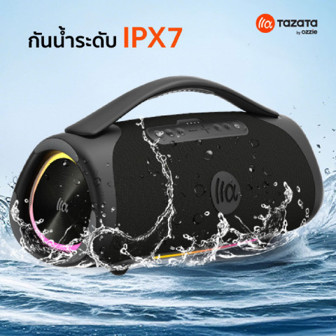 ดีไซน์แข็งแรงพร้อมหูหิ้วและสายสะพายไหล่ เคลื่อนย้ายสะดวก เหมาะกับปาร์ตี้นอกสถานที่ แคมป์ปิ้ง หรือกิจกรรมเอาต์ดอร์ทุกสไตล์ มาพร้อมแบตเตอรี่ความจุสูง ใช้งานต่อเนื่องได้ สูงสุด 10 ชั่วโมง และรองรับการควบคุมผ่าน แอป TAZATA เพื่อปรับ EQ และตั้งค่าการใช้งานได้ง่ายตามใจคุณ