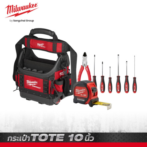 Milwaukee 48-22-8311 PACKOUT กระเป๋า TOTE 10 นิ้ว ชุดพร้อมใช้งาน เซ็ตเดียวจบสำหรับช่างมืออาชีพและสาย DIY ที่ต้องการความคล่องตัวในการพกพาเครื่องมือ พร้อมระบบจัดเก็บแบบโมดูลาร์ในซีรีส์ PACKOUT ช่วยให้จัดระเบียบอุปกรณ์ได้เป็นระบบ หยิบใช้ไว ทำงานหน้างานได้ลื่นไหลยิ่งขึ้น