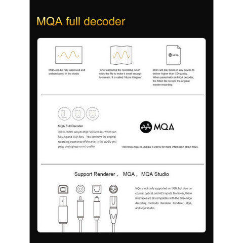 ใช้ชิปเรือธง 2 ตัวให้แต่ละแชนเนลทำงานอย่างอิสระ เพิ่ม SNR/ไดนามิก และลดความเพี้ยนเมื่อเทียบกับรุ่นก่อนMQA ถอดรหัสเต็มรูปแบบ (Full Decoder)
