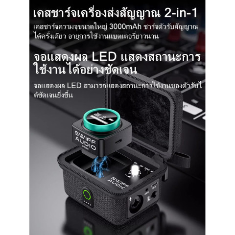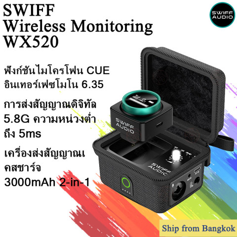 SWIFF Audio WX520 ระบบไวร์เลสอินเอียร์มอนิเตอร์ย่าน 5.8GHz สำหรับงานเวที ซ้อมวง สตูดิโอ และไลฟ์สตรีมมิ่ง ที่ต้องการเสียงมอนิเตอร์คมชัด สัญญาณนิ่ง และหน่วงเวลาต่ำเป็นพิเศษ มาพร้อมแนวคิด 3-in-1 ที่รวม ตัวส่งสัญญาณ + เคสชาร์จ + กล่องเก็บ ไว้ในชุดเดียว พกพาง่าย พร้อมลุยทุกงาน