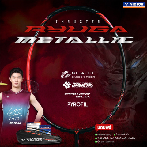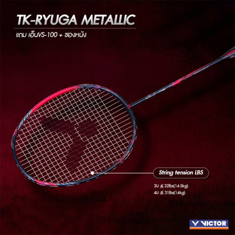 VICTOR ไม้แบดมินตัน รุ่น TK-RYUGA METALLIC รุ่นพลังโจมตีระดับ Super สำหรับสายบุกที่ต้องการ “ตบหนัก เร็ว และคม” ด้วยโครงสร้างเฟรมที่เน้นความมั่นคง ลดแรงบิด และใช้วัสดุคาร์บอนเกรดสูง ช่วยส่งถ่ายแรงได้เต็มไม้เต็มมือ ให้เกมรุกดุดันขึ้นอย่างเห็นได้ชัด