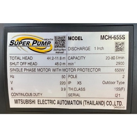 🔥ส่งเร็ว ถูกสุด🔥 MITSUBISHI ปั๊มน้ำหอยโข่งหลายใบพัด รุ่น MCH-655S (1"x1") ปั๊มแรงดันสูง เสียงเบา ทนทาน เหมาะกับบ้านพักอาศัย อาคาร และงานระบบน้ำที่ต้องการแรงดันสม่ำเสมอ พร้อมวัสดุต้านการกัดกร่อน ใช้งานกับน้ำสะอาด/น้ำดื่มได้อย่างมั่นใจ (มาตรฐาน NSF 61)