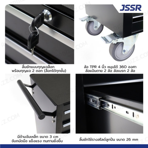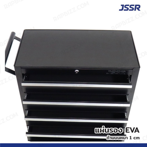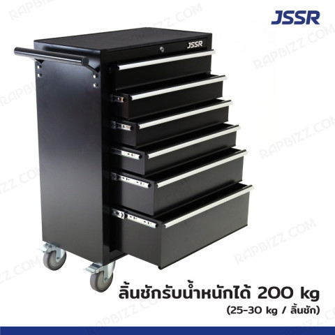 JSSR ตู้เครื่องมือ 6 ลิ้นชัก มีกุญแจล็อค 34x71x89 ซม. สีดำ รุ่นล้อใหญ่ 4 นิ้ว (เสียงเงียบ) ตัวช่วยจัดระเบียบเครื่องมือช่างให้เป็นหมวดหมู่ หยิบใช้งานง่าย เคลื่อนย้ายสะดวก เหมาะทั้งงานช่างในบ้าน อู่ซ่อม โรงงาน หรือพื้นที่ทำงานที่ต้องการความเป็นระเบียบและความคล่องตัว